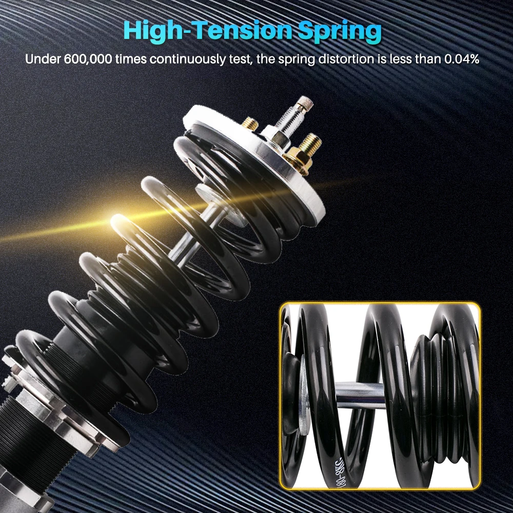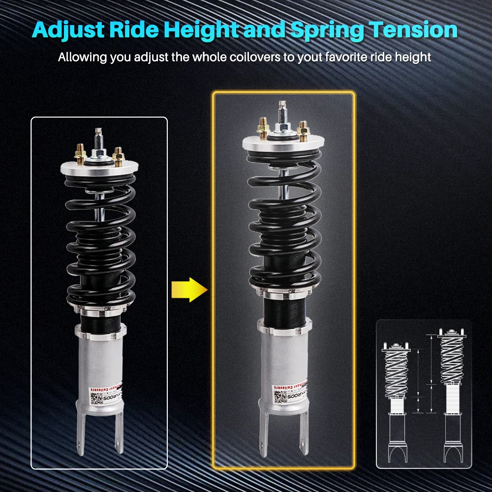*24 регулировки уровня увлажнения позволяет вам идеально набрать в вашей системе coilovers. Вы можете наслаждаться удобным опытом езды во всех дорожных условиях.
