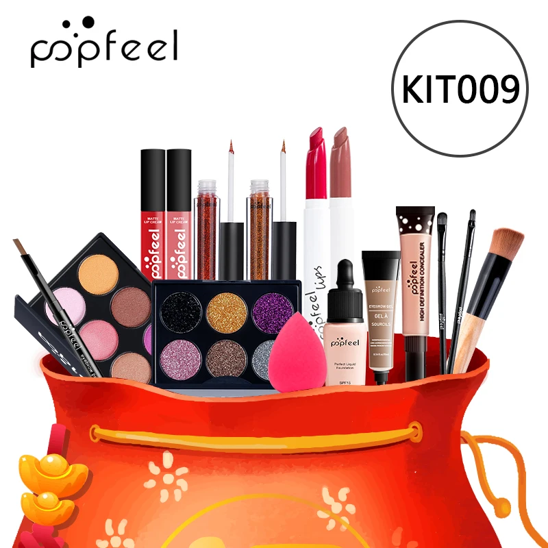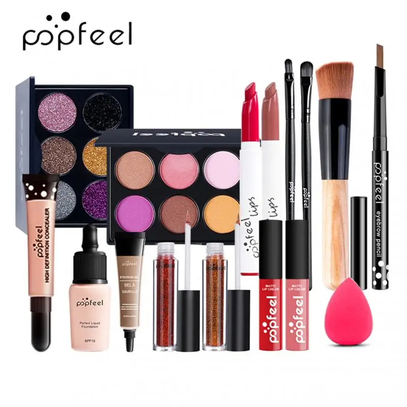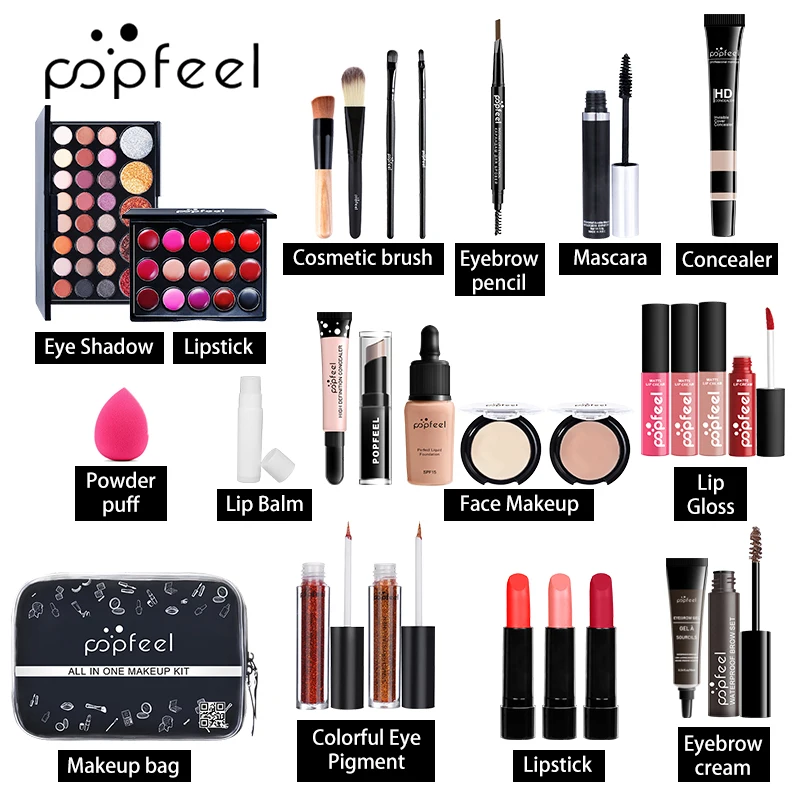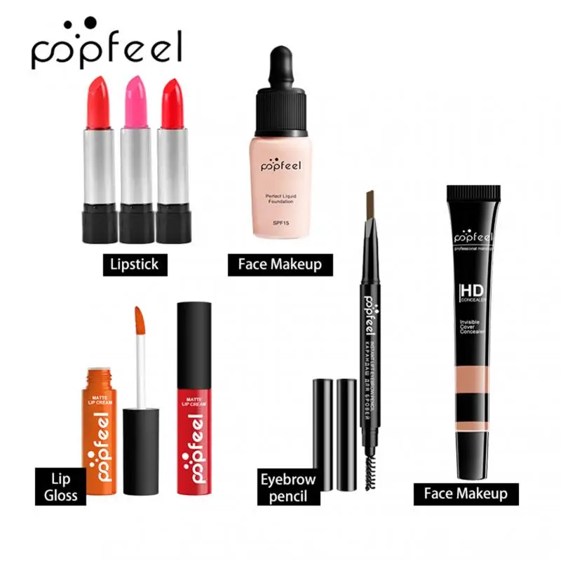Отзывы о Набор для макияжа губ POPFEEL (тени блеск помада кисти бровей консилер) с косметичкой
