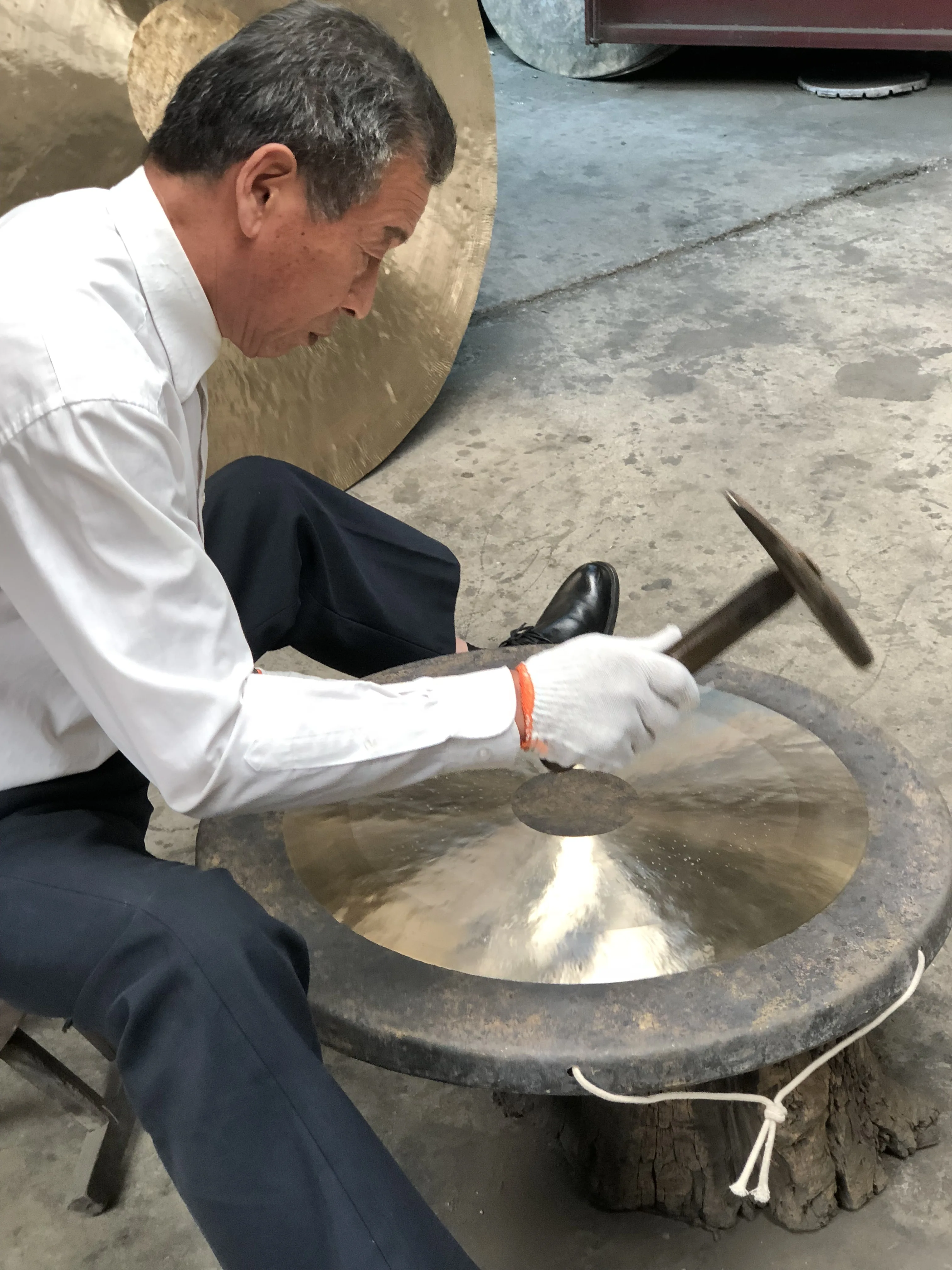 У нашего гонга отличный звук. Наши процессы: литье, закалка, формовка, шлифовка, полировка и тонирование.