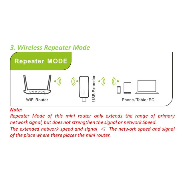 1. Режим реле: Беспроводной до беспроводной: После получения беспроводного сигнала от беспроводного маршрутизатора ретранслятор повторно передает новый беспроводной сигнал, чтобы достичь эффекта усиления и расширения покрытия. Совместимость со всеми беспроводными маршрутизаторами (необходимо знать имя пользователя и пароль беспроводного сигнала), Настройка очень проста. Продукт поставляется с инструкциями. Мобильные телефоны, компьютеры, планшеты можно установить, только нужно настроить, как только все беспроводные устройства могут быть использованы.