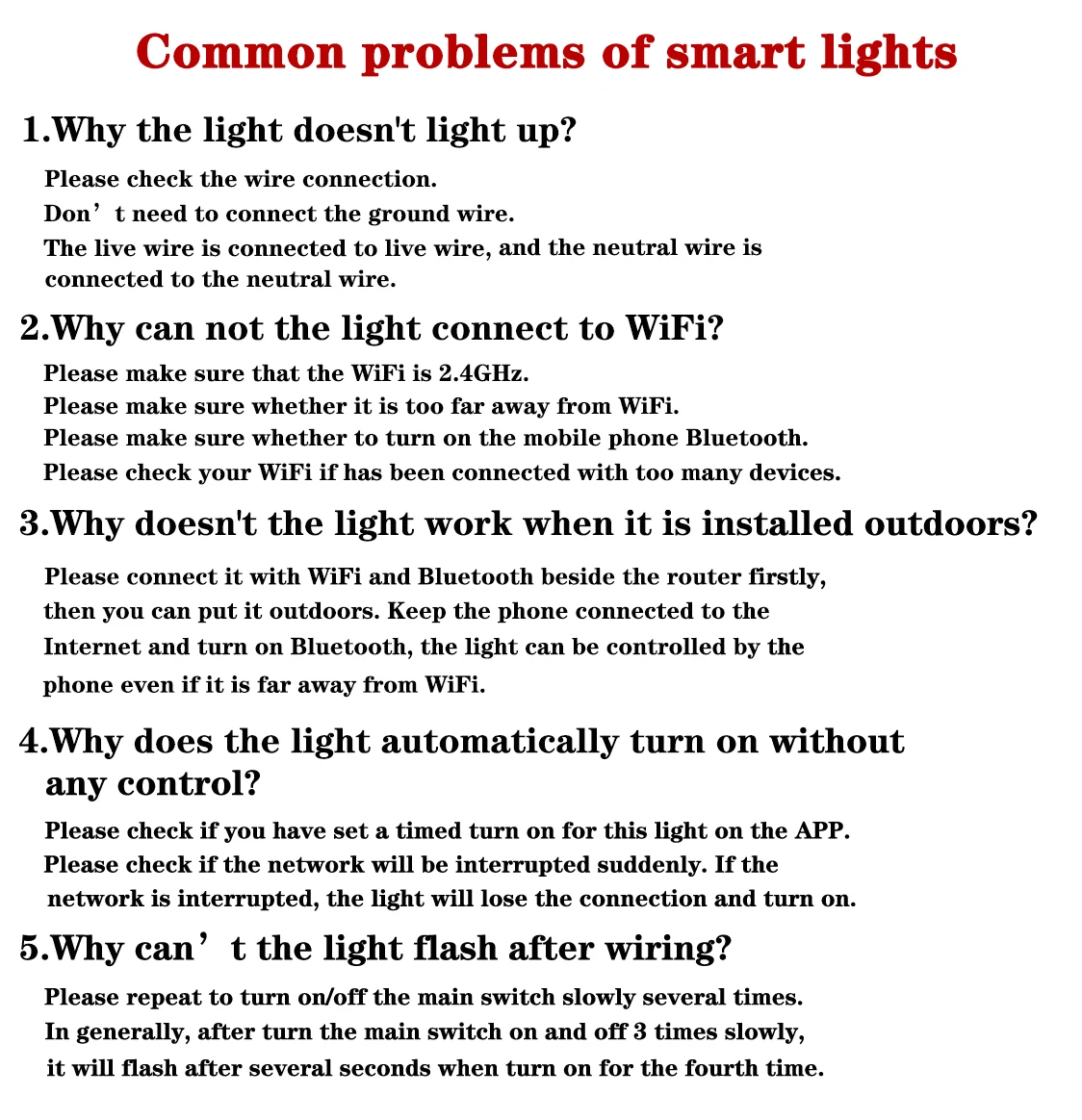 5. Почему светильник не мигает после подключения?