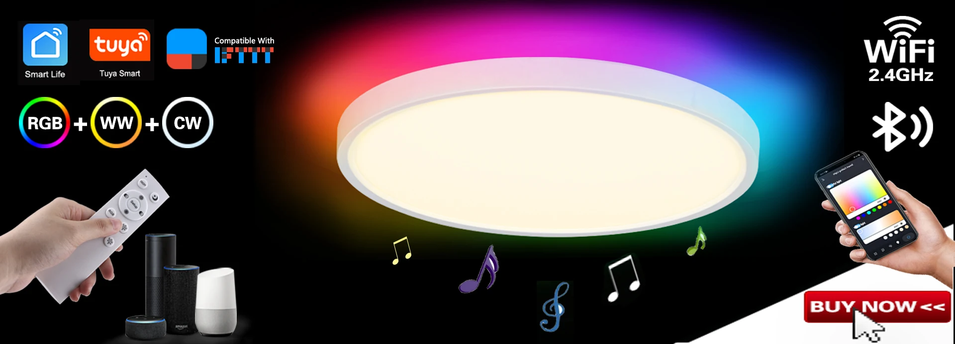 Светильник цвет: RGB + WW + CW