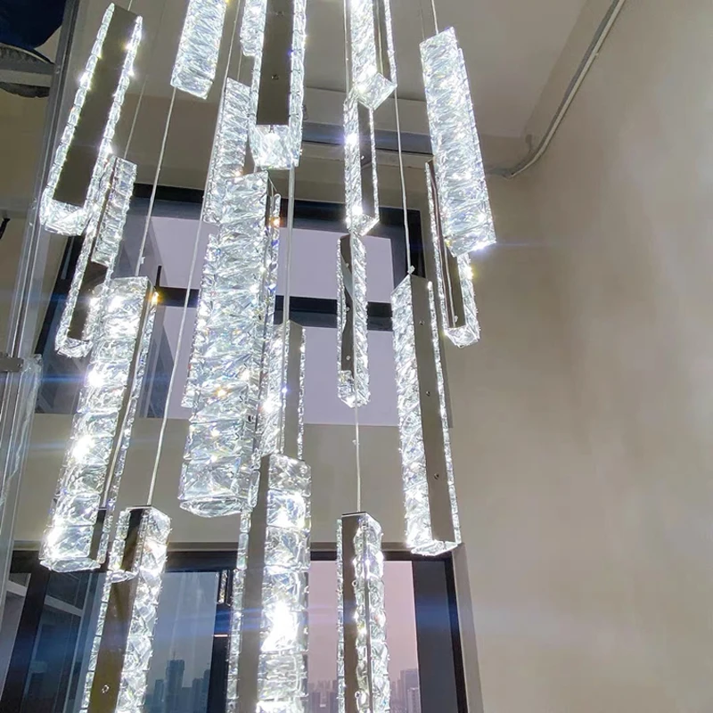 Современная светодиодная хрустальная люстра, хром, длинная лестница, Роскошный дизайнерский светильник, крепление AC110-220 В, освещение для помещений, светильник