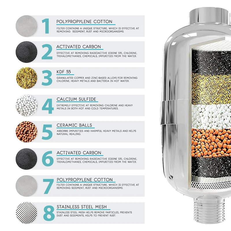 Эффект очистки воды: удаление вирусов, удаление накипи, Удаление тяжелых металлов, удаление органических веществ, Удаление хлора, удаление осадка, удаление ржавчины, удаление бактерий Спецификация: Материал: АБС Стиль: Модный, купальный