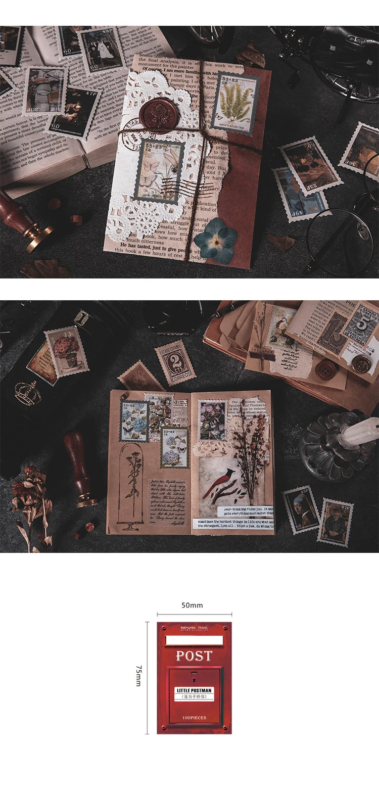 Отзывы о 100Pcs/Box Vintage Little Postman Series Stamp Theme Paper Sticker Package DIY Diary Decoration Album Scrapbooking - купить по