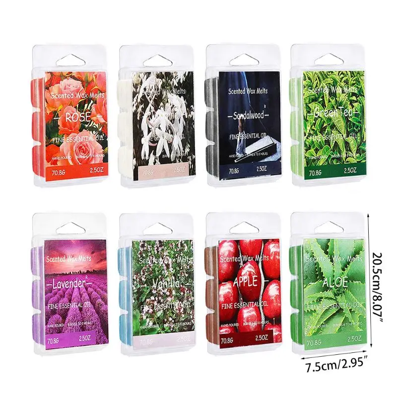 Воск теплее кубов включают яблоко, алоэ, зеленый чай, сандаловое дерево, роза, ваниль, жасмин, лаванда