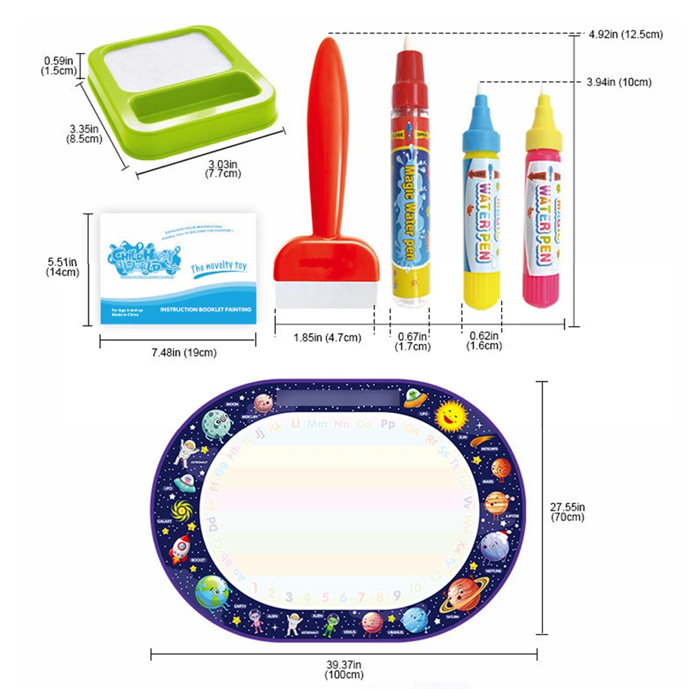 Дизайн планеты Овальный многоразовый водный холст для письма граффити коврик для рисования детская игрушка