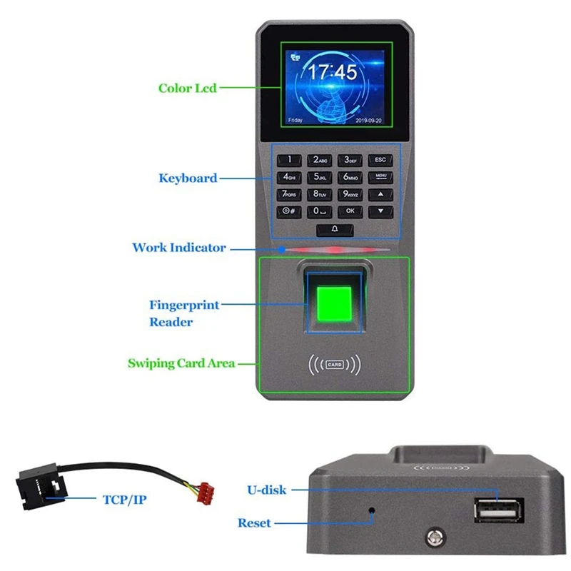 2,4 дюймов TCP/IP/USB биометрический считыватель RFID клавишная панель отпечатков пальцев Система контроля доступа электронные часы реального времени по отпечаткам пальцев