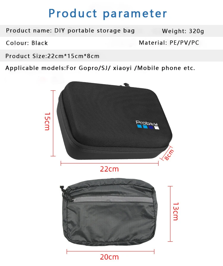 Описание: Этот портативный чехол Изготовлен из высококачественного PE/PV/PC материала, предназначен для хранения камеры и большинства