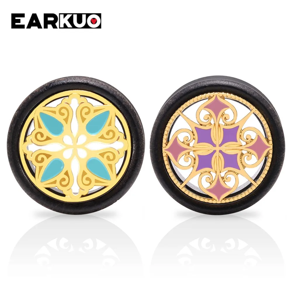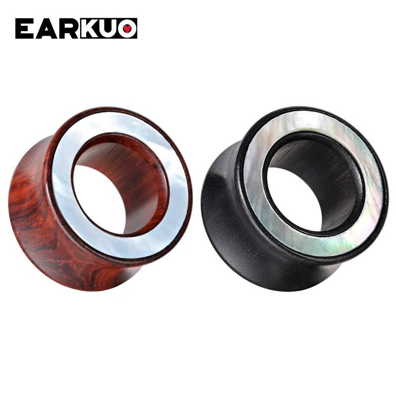 EARKUO, модный дизайн, деревянная каменная оболочка, белая линия, Затычки Для Пирсинга Ушей, носилки, ювелирные изделия для тела, ушные туннели, расширители датчиков, 2 шт.