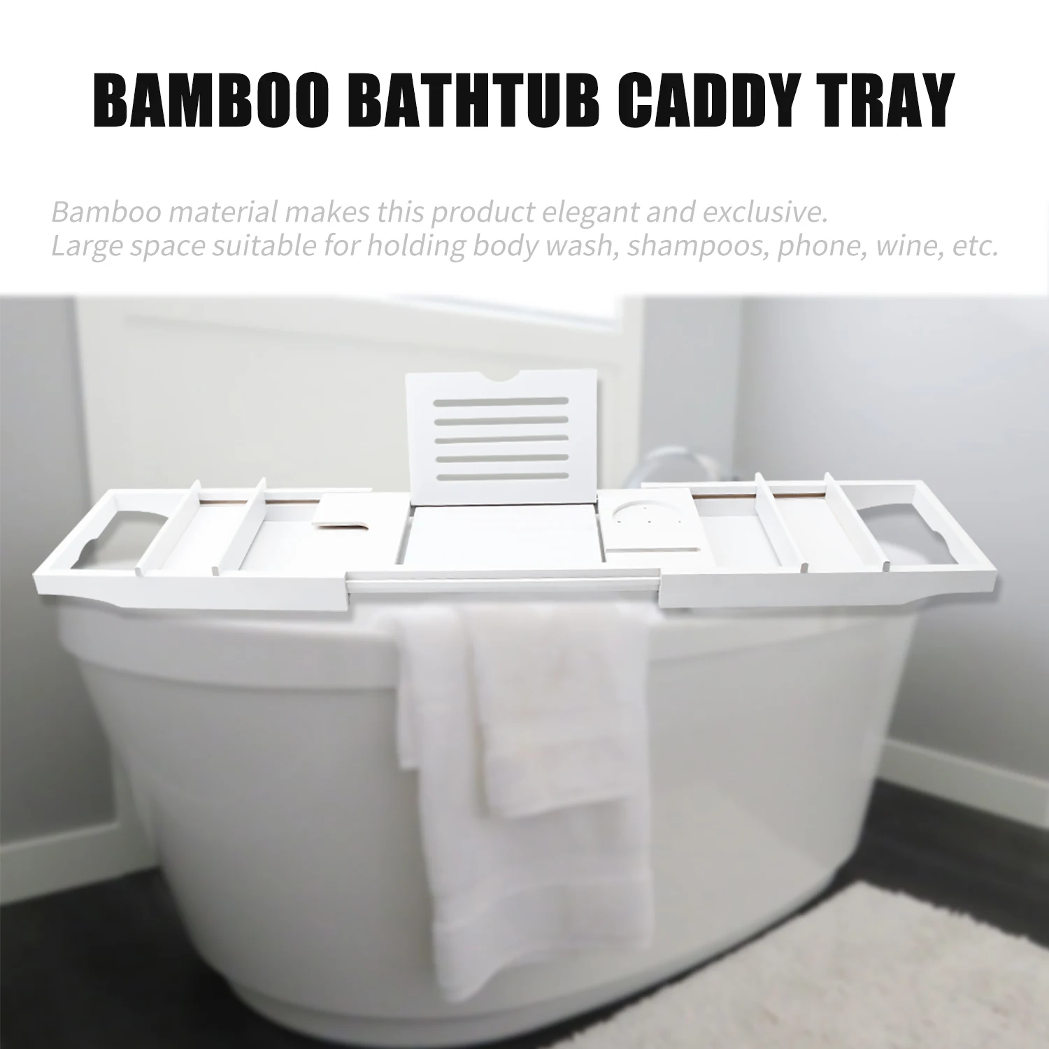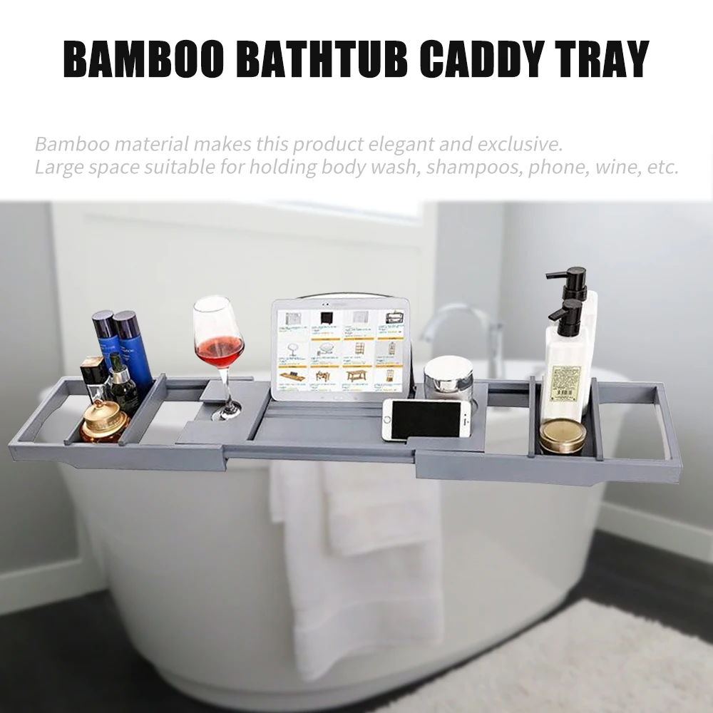 Лоток для ванны изготовлен из бамбука, покрыт слоем лака для длительного использования. Ванна caddy лоток с стойка для чтения и держатель вина для спа аксессуаров. Специально разработанный растягивающийся лоток для ванны caddy подходит для большинства ванн, доступных на рынке. Поднос для ванны предназначен для всех ваших потребностей.