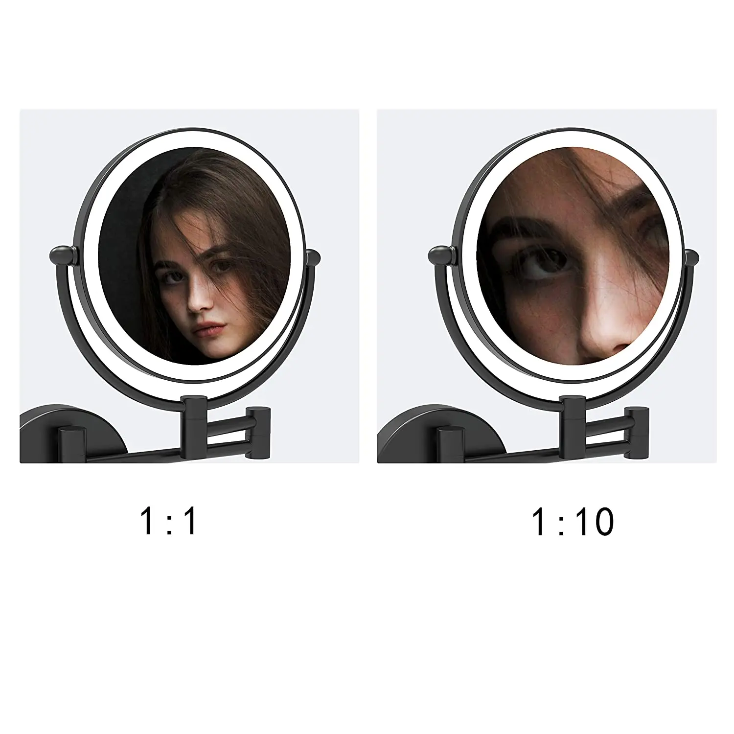 * Двойные стороны --- увеличение и 1:1 зеркальное изображение, это точно, чтобы увидеть детали вашей кожи, также поможет кому-то с низким зрением увидеть лучше. Примечание: Все 10x увеличения должны быть использованы в пределах 2 "от зеркала, которое может ограничивать использование, для нанесения макияжа, 7X или 5X Увеличительное Зеркало будет рекомендовано. * Размер-1 дюйм толщина; Рука: 11 дюймов Расширение; Шнур питания: 5,9 футов Длина. Материал-латунная рама и полированная хромированная поверхность, обеспечивающая качество и долговечность, основа изготовлена из нержавеющей стали SUS304, не ржавеет, очень прочная. * Белый Холодный светильник --- 5 Вт, 500 м, 6500 к холодный светильник, без темных зон, ореолов или бликов. С подсветкой с яркими натуральный белый светодиодный светильник с обеих сторон зеркала. Более 50000 часов постоянной во время выполнения, эксплуатационные расходы низки в значительной степени сокращено. * Простота установки --- поставляется в комплекте с винтами и инструкциями. 8 дюймовая зеркальная поверхность, рукоятка до 11 дюймов, может быть расширена в соответствии с вашими потребностями. Каждая ванная комната должна иметь один! Увеличительное зеркало для ванной настолько полезно при укладке волос или при необходимости увеличения.