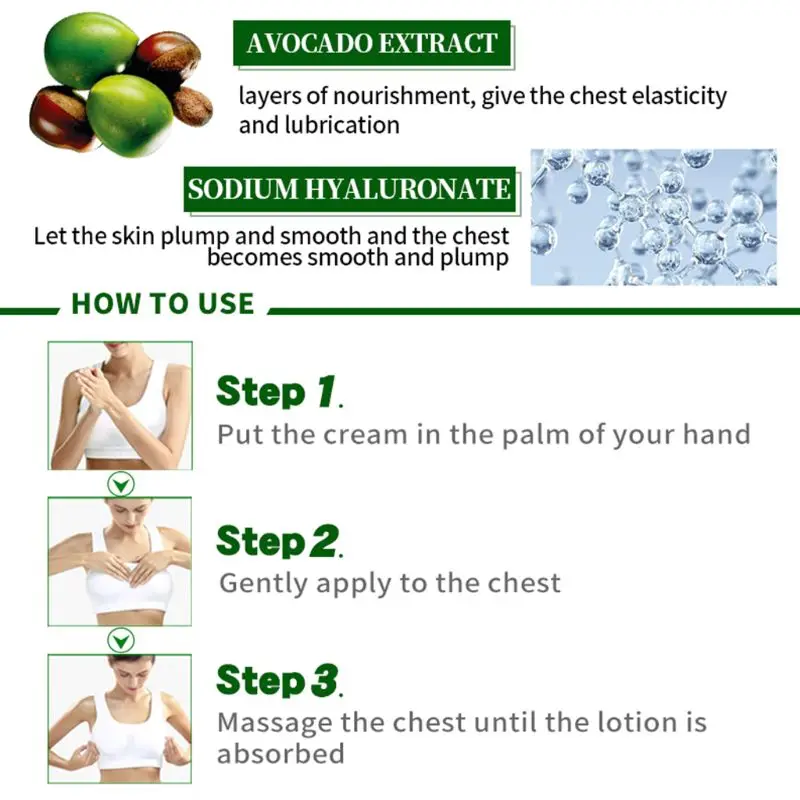 Способствует питательному поглощению кожи груди, регулирует баланс кожи груди
