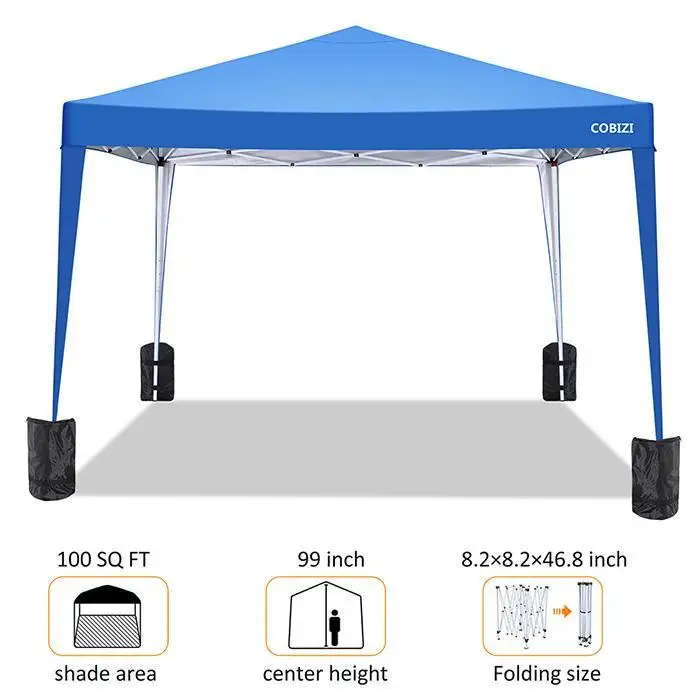 Складной тент изготовлен из ткани Оксфорд хорошего качества с серебряным покрытием сверху, 100% водонепроницаемый и блокирует 99% солнечных лучей, УФ-защиты. Прочная стальная рама с порошковым покрытием высокого качества с порошковым покрытием гарантирует устойчивость к ржавчине и коррозии.
