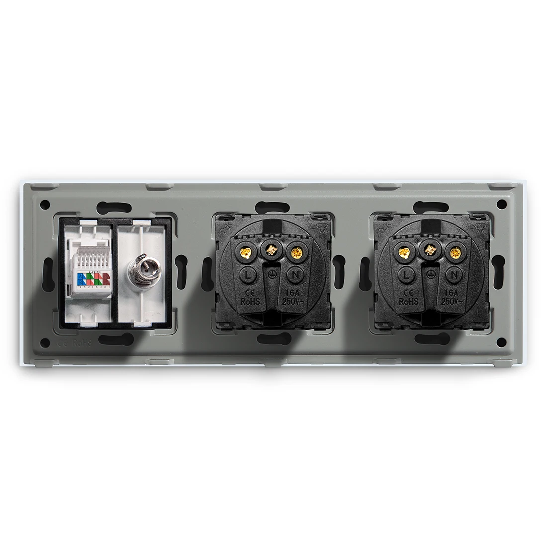 Название бренда: BSEEDРазмер: 157x86x37 ммЦвета: черный, белый, GlodenТок: 16АМатериал: Поликарбонат + Хрустальное стеклоГарантия: 1 годСертификация: CE, BS, RoHS, GCC, FCРабочее напряжение: 110-250 ВОтносительная влажность: 10% ~ 93%Рабочая температура: -30 ℃ ~ + 70 ℃Примечание:Вы должны отключить питание и во время установки.