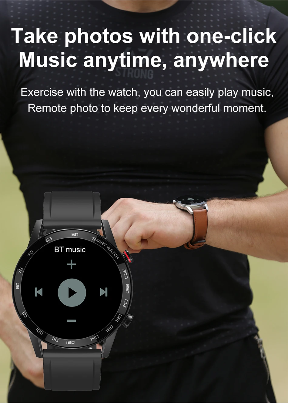 Занимайтесь спортом с часами, Вы сможете легко воспроизводить музыку, удаленно фотографировать, чтобы сохранить каждый прекрасный момент.
