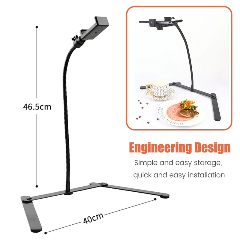Регулируемый по высоте и гибкий угол: высоту можно регулировать без давления в диапазоне. С этой подставкой вам не нужно долго держать телефон. Он используется для съемки онлайн-лекций, еды и вещания, съемок и т. д.