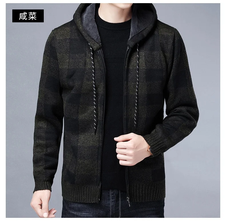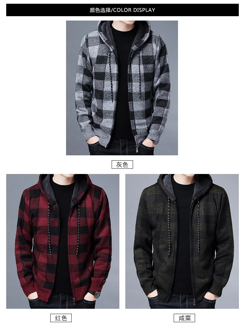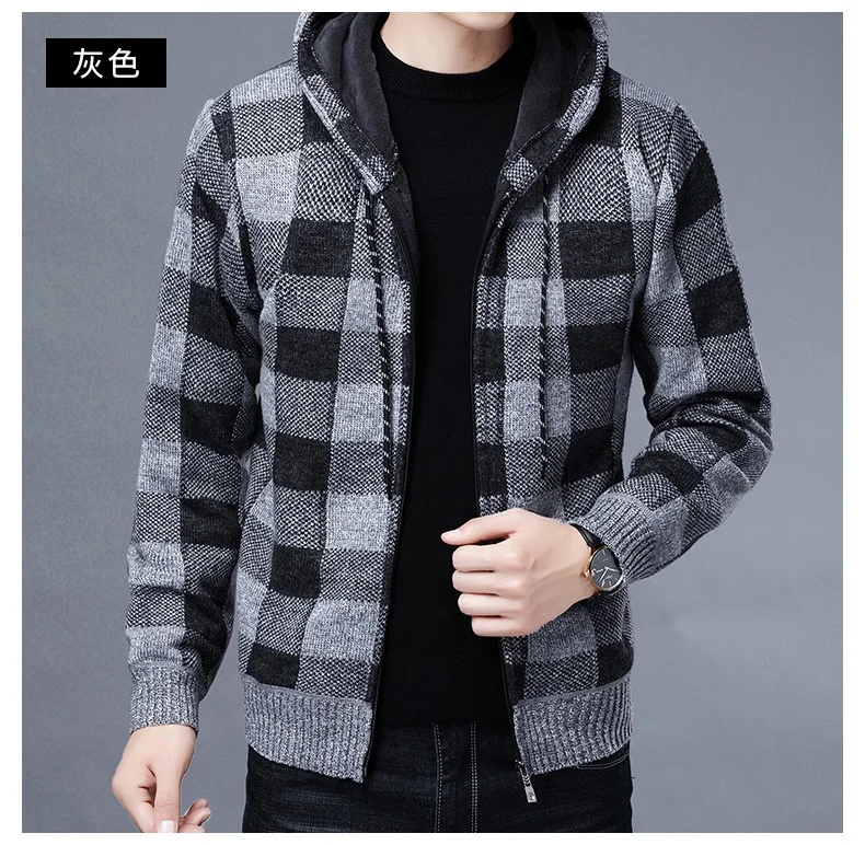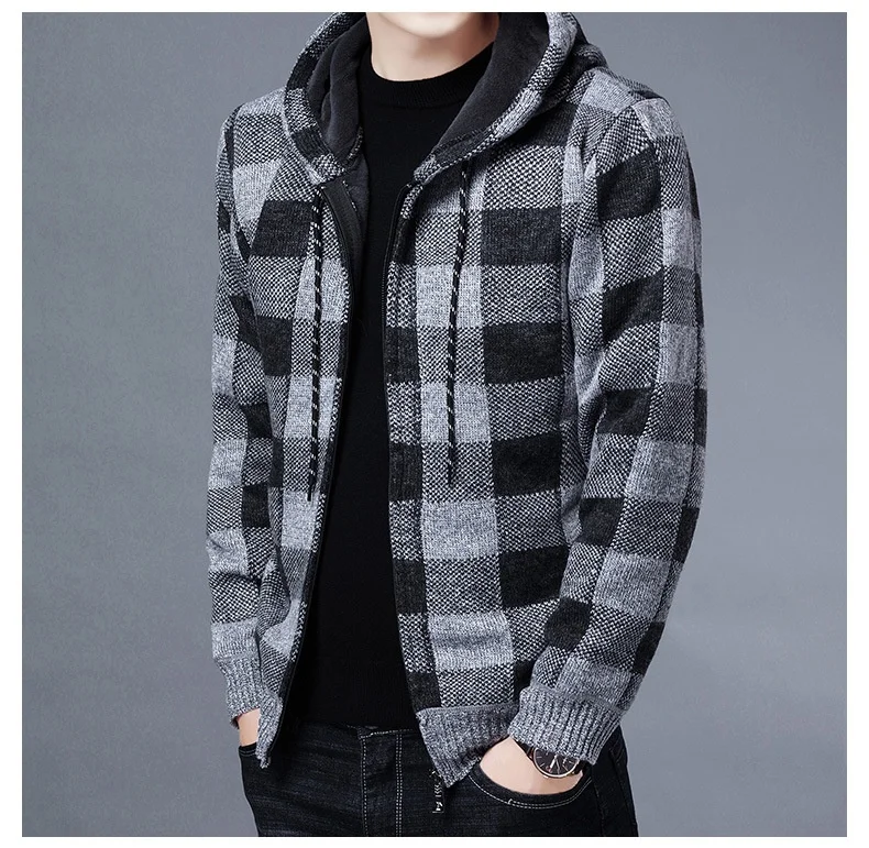 RUIHUO клетчатый кардиган с капюшоном, Мужская одежда, Зимний вязаный кардиган, свитер, мужские пальто, мужской свитер, модный M-3XL, 2022