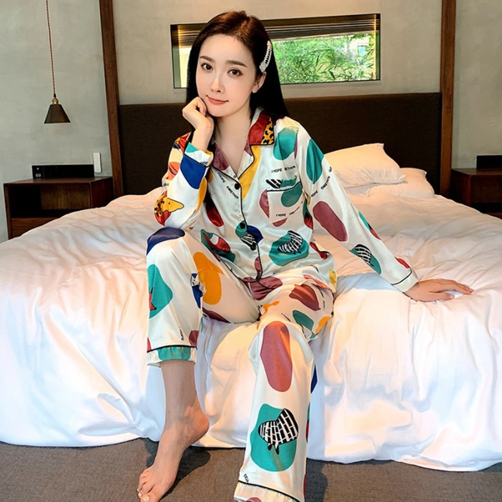 Отзывы о Любителей пижамы Для женщин длинный рукав шелковый атлас пижамный комплект