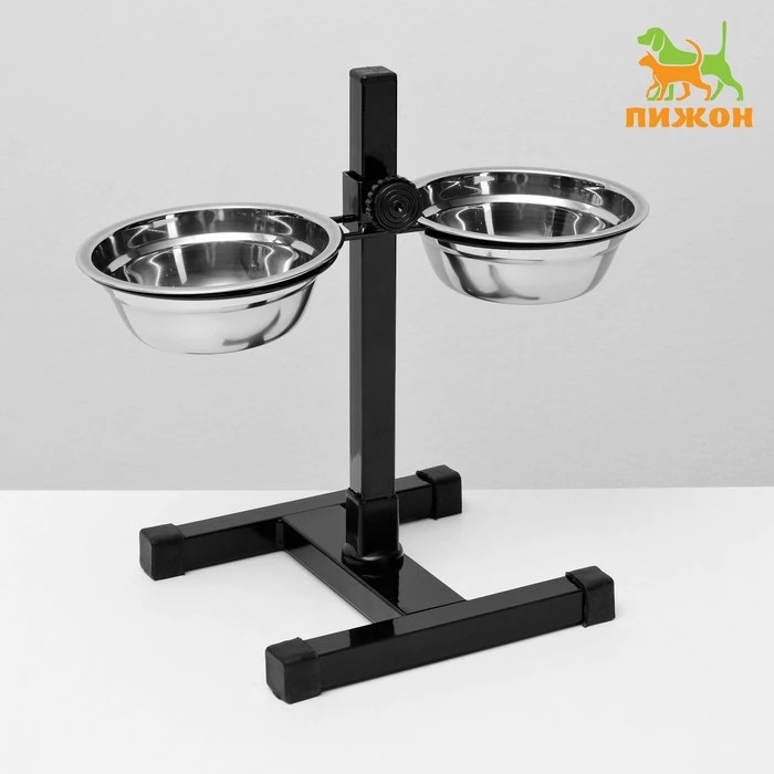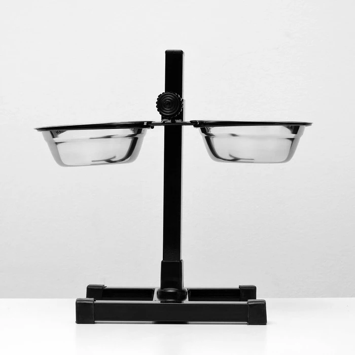Подставка с мисками, 2 х 350 мл, высота 30 см, разборная, чёрная 4940337