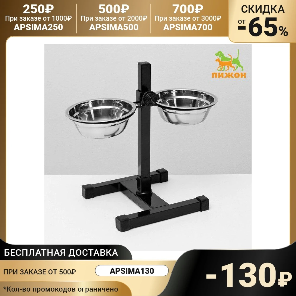 Отзывы о Подставка с мисками 2 х 350 мл высота 30 см разборная чёрная 4940337 | Дом и сад