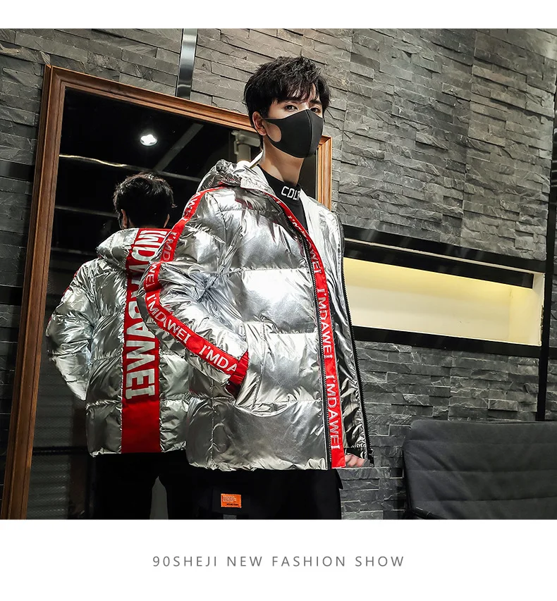 Отзывы о Новинка куртка ANSZKTN на белом утином пуху короткая Серебристая блестящая Толстая