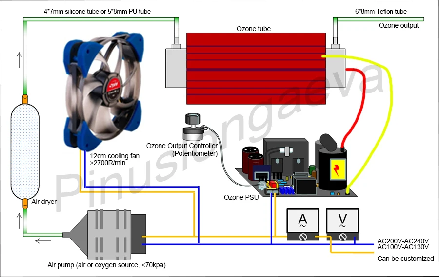 Dehydroxylation Высокая чистота кварцевая трубка генератор озона комплект:#1: состав кварцевых труб:99.9% кремнезема, с сильной твердостью, высокой термостойкостью, низким коэффициентом теплового расширения (CTE), термостойкостью, хорошей химической стабильностью и электроизоляционными свойствами.#2: Высокая эффективность:Узкий зазор разряда 0,4 мм, с высокой озоновой коэффициент конверсии и низким уровнем шума.#3: Низкое энергопотребление:Высоковольтный высокочастотный коронный разряд, с коэффициентом энергопотребления 6 ~ 10 кВт. Ч/кг O3.#4: Высокое сопротивление напряжения:Рабочее напряжение трубки составляет всего 1/5 от его пробоя напряжения, с высокой диэлектрической постоянной.#5: Высокое качество:Диэлектрический материал изготовлен из высокочистого кварцевого кремнезема, спеченного при высокой температуре, с высокой точностью и равномерным разрядом. Он оснащен внутренним электродом из нержавеющей стали 316L, твердыми крепежами, насадками из ПТФЭ и антикоррозийными высокочистыми фтористовыми резиновыми кольцевыми уплотнениями. Новейшая технология рассеивания тепла из алюминиевого сплава подсолнуха применяется для наружного воздушного охлаждения рассеивания тепла, что обеспечивает более эффективное рассеивание тепла. И долгое время распада озона очень низкая, <1/10.#6: Срок службы:Больше чем 20000 часов.#7: озоновый Блок питания:Защита от перегрузки по току и перенапряжения, защита от короткого замыкания, защита от открытого замыкания.Если кварцевая стеклянная трубка повреждена, озоновый блок автоматически прекратит выход высокого напряжения.Требования к установке:Озоновая трубка: мы рекомендуем установить озоновую трубку на изоляционную панель. Если вы хотите установить его на металлическую оболочку, мы рекомендуем подключить заземляющий провод к вашей металлической оболочке.Озоновый Блок питания: вы можете использовать длинные винты для установки озонового блока питания (источник питания озона, печатная плата) вдали от озоновой трубки (металлический корпус или другие электрические приборы) более 4 см. (Спереди, сзади, слева, справа, вверх, вниз)Красный высоковольтный провод: вдали от металлической оболочки и других проводов более 1 см.Вам нужен охлаждающий вентилятор для охлаждения озоновой трубки и озонового блока.