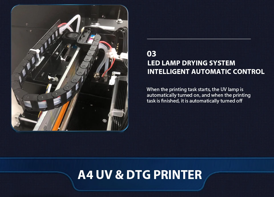 Этот УФ-принтер был обновлен с оригинальной A4-6. Добавлены функции автоматического инфракрасного зондирования и регулировки платформы, кроме того, функции такие же, как A4-6.