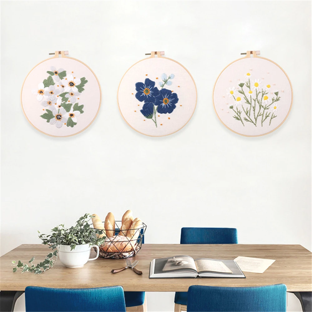 Цветочные узоры темно-синего цвета поделки, ручная вышивка набор для начинающих обручи нитки поставляет декоративно-прикладного искусства и ремесел снижена Давление времяпрепровождения