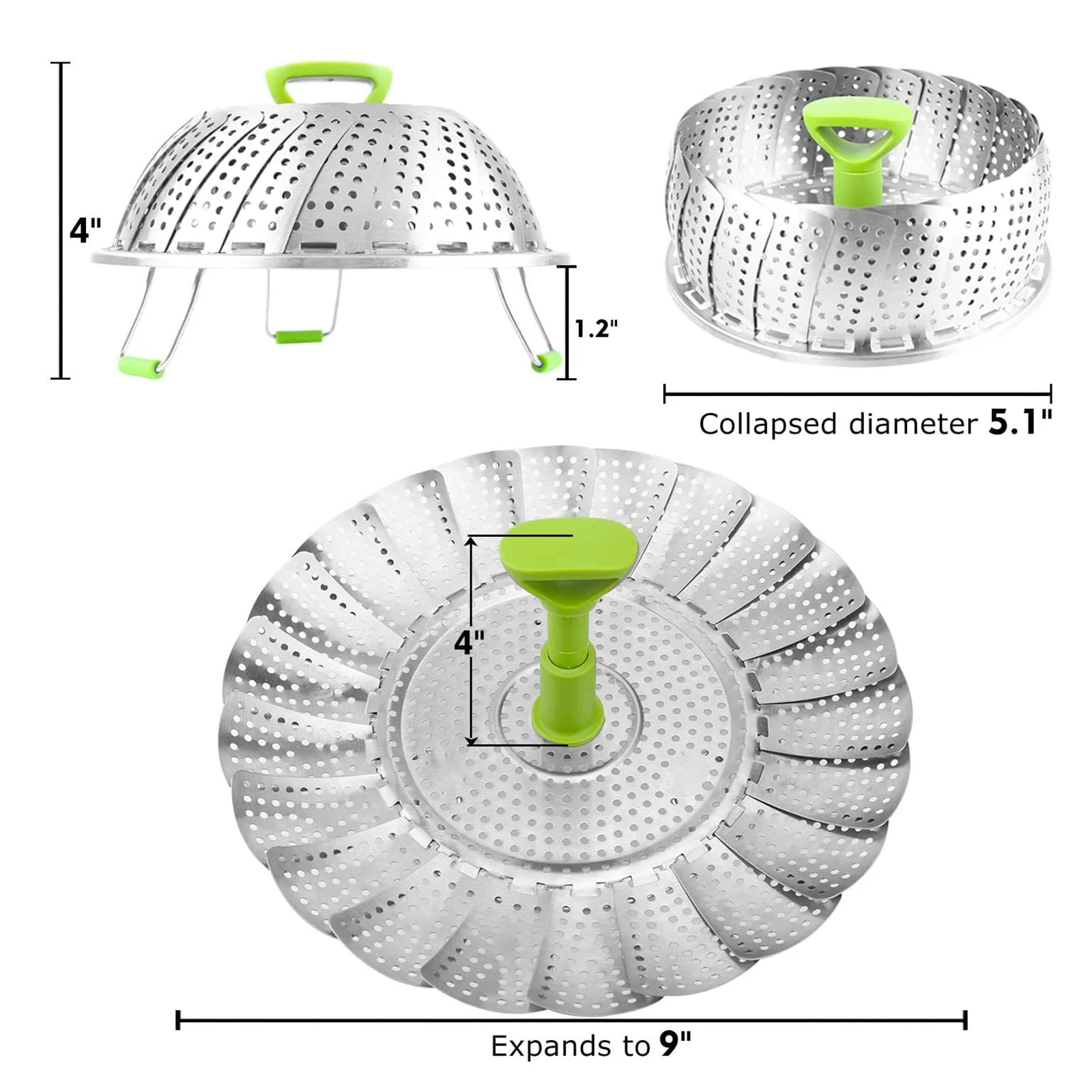 2. Вентиляторы, которые складываются и выключаются, позволяют корзине для отпаривателя пищи соответствовать различным размерам кастрюли/сковороды или скороварке, открываются как водяная Лилия и компактно складываются, чтобы сэкономить место для хранения.