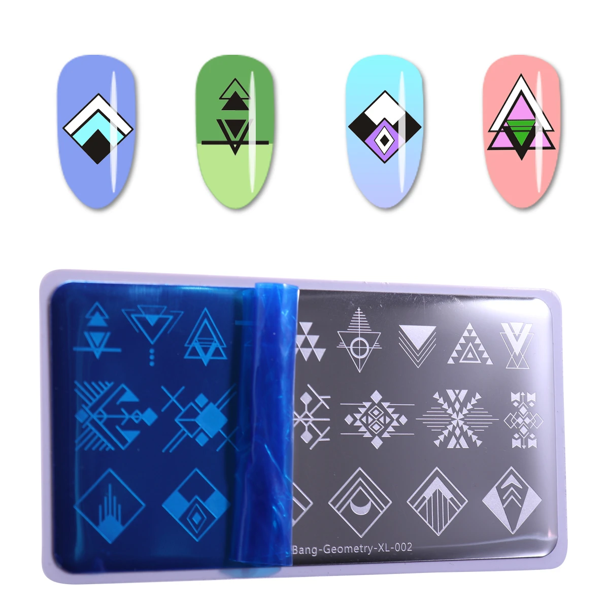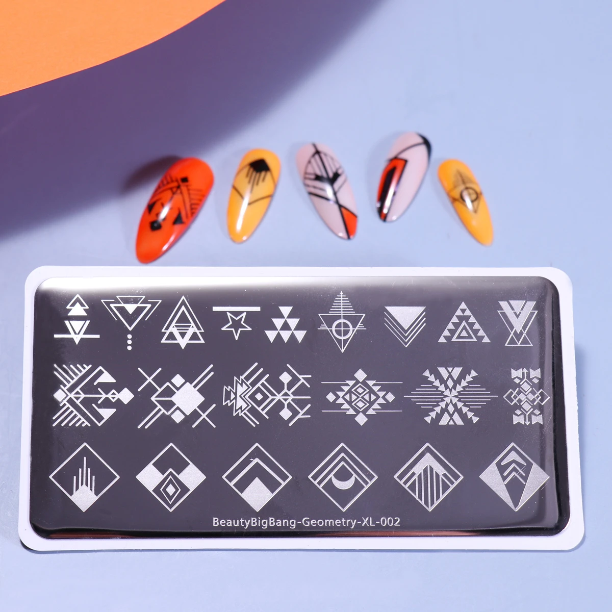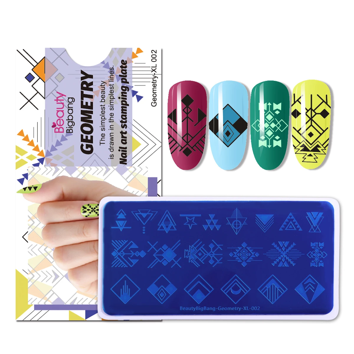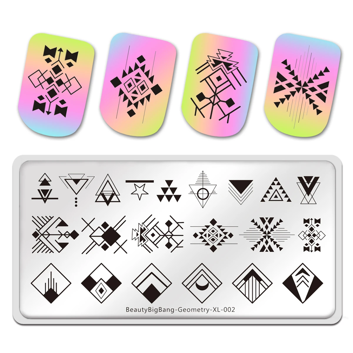 BeautyBigBang пластины для стемпинга ногтей геометрические 002 Линии Квадратные Звезды Луна треугольные изображения из нержавеющей стали трафарет для дизайна ногтей Спецификация: Тип товара: пластина для ногтевого художественного стемпинга Размеры: прибл. 6*12 см Вес: 35 г Бренд: BEAUTYBIGBANG Инструкции: пластина защищена тонкой прозрачной защитной пленкой, пожалуйста, удалите пленку перед использованием, так чтобы лак для ногтей можно было передавать при помощи штампа. Особенность: 1. Нанесите Базовое покрытие или обычный лак на ноготь. 2. Нанесите лак для ногтей на желаемое изображение в пластине. (Рекомендуется: использовать сплошной цвет лака для ногтей, так что текстура толще, чем у любого другого лака для ногтей) 3. Поставьте скребок под углом 45 градусов и БЫСТРО снимите излишки лака, плотно прижимая скребок. Сразу прижмите штамп, немного провернув его, чтобы переснять рисунок. Изображение переносится на штамп. 5. Отпечатайте изображение на ногте, немного провернув штамп. Изображение переносится на ваш ноготь. 6. Повторите вышеописанные шаги на остальных ногтях.