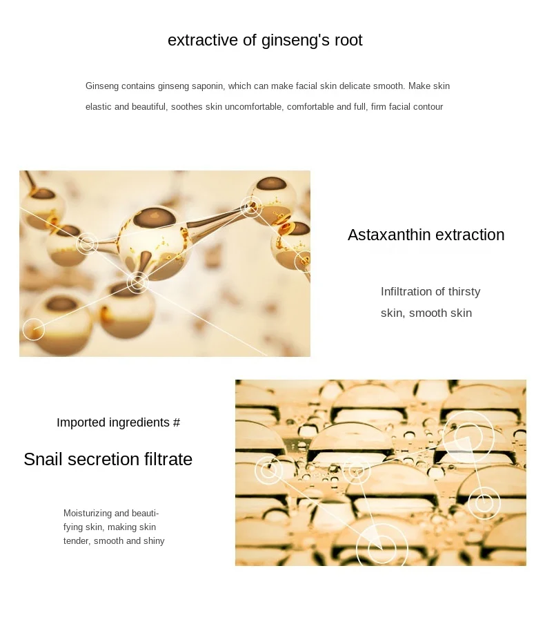 Состав: корень женьшеня, экстракт алоэ, астаксантин, фильтрат секреции улитки