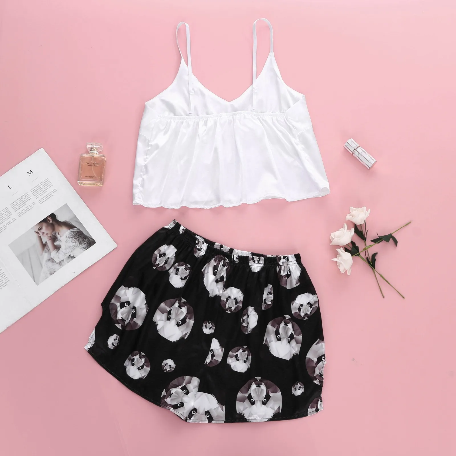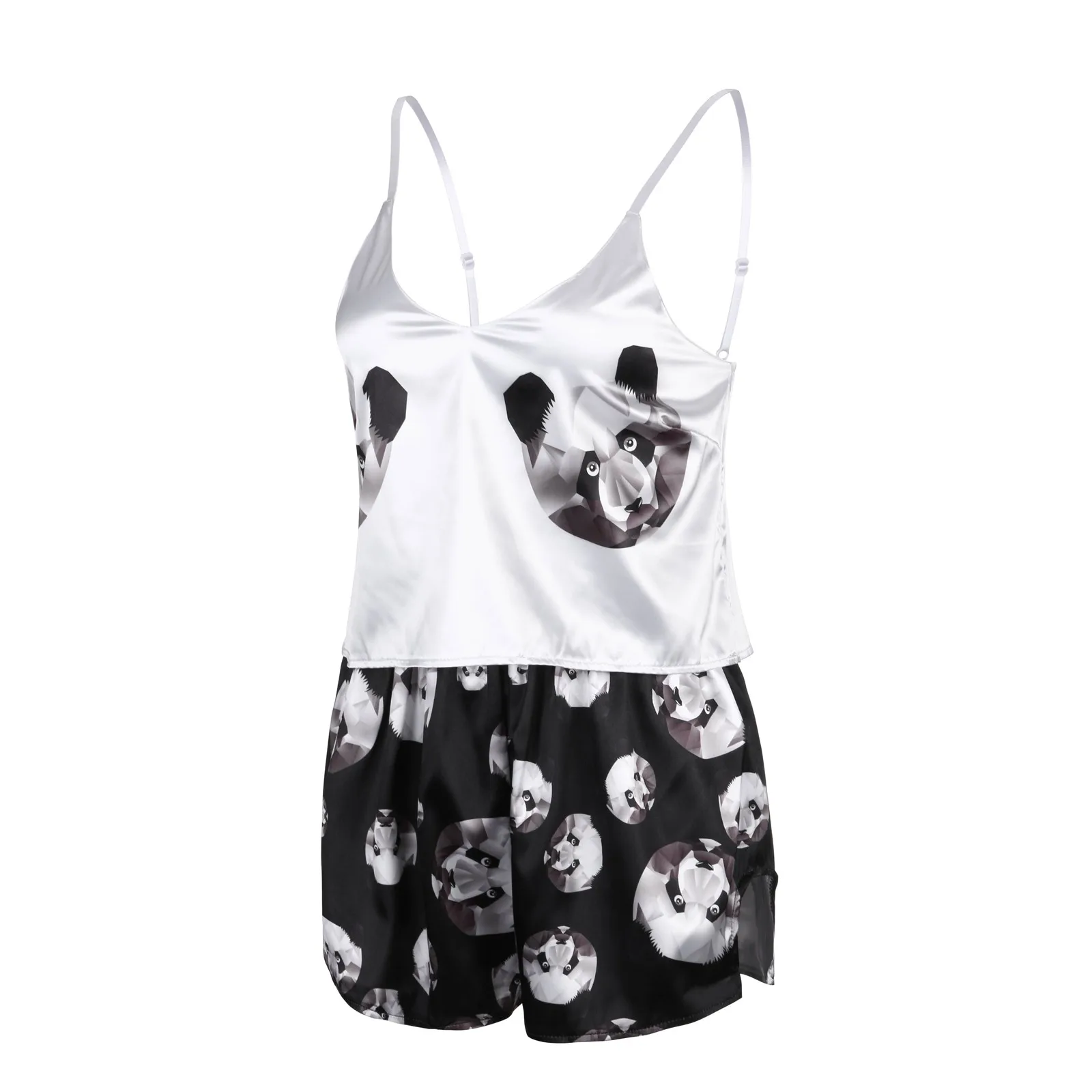 Отзывы о Пижама женская атласная с принтом панды комплект из 2 предметов рубашка без