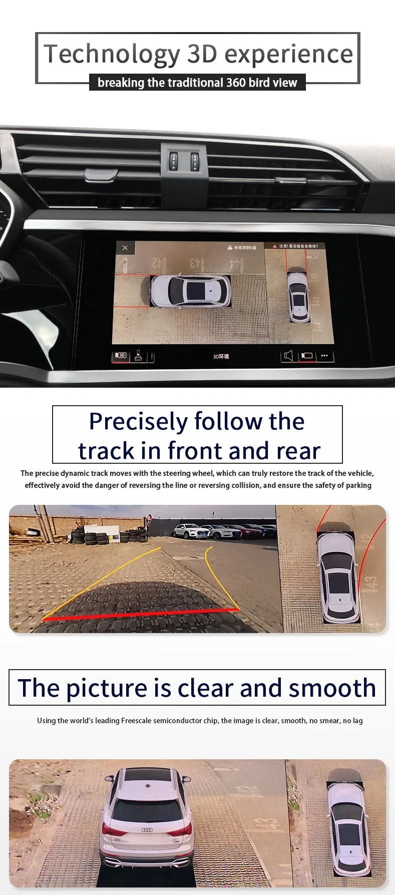 • P кнопочный переключатель 360 + регулятор • Ботинки вокруг, окружающая ситуация ясна • Поддерживает 2D панораму, 3D панораму, одиночный экран камеры выключается и открывается и другие комбинированные режимы отображения • Поддержка AHD, CVBS, VGA и других форматов выходного интерфейса • Пресс-форма-4 канала видео в режиме реального времени водительское удостоверение, Локальное воспроизведение • 4-канальный сигнал hd AHD, четкое и гладкое качество изображения • Узкие дорожные условия в режиме реального времени, безопасность вождения