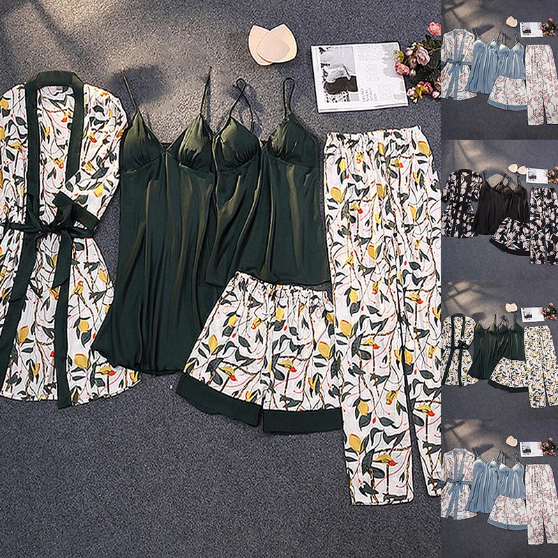 Отзывы о Пижама женская атласная пикантный Шелковый комплект одежда для сна мягкая