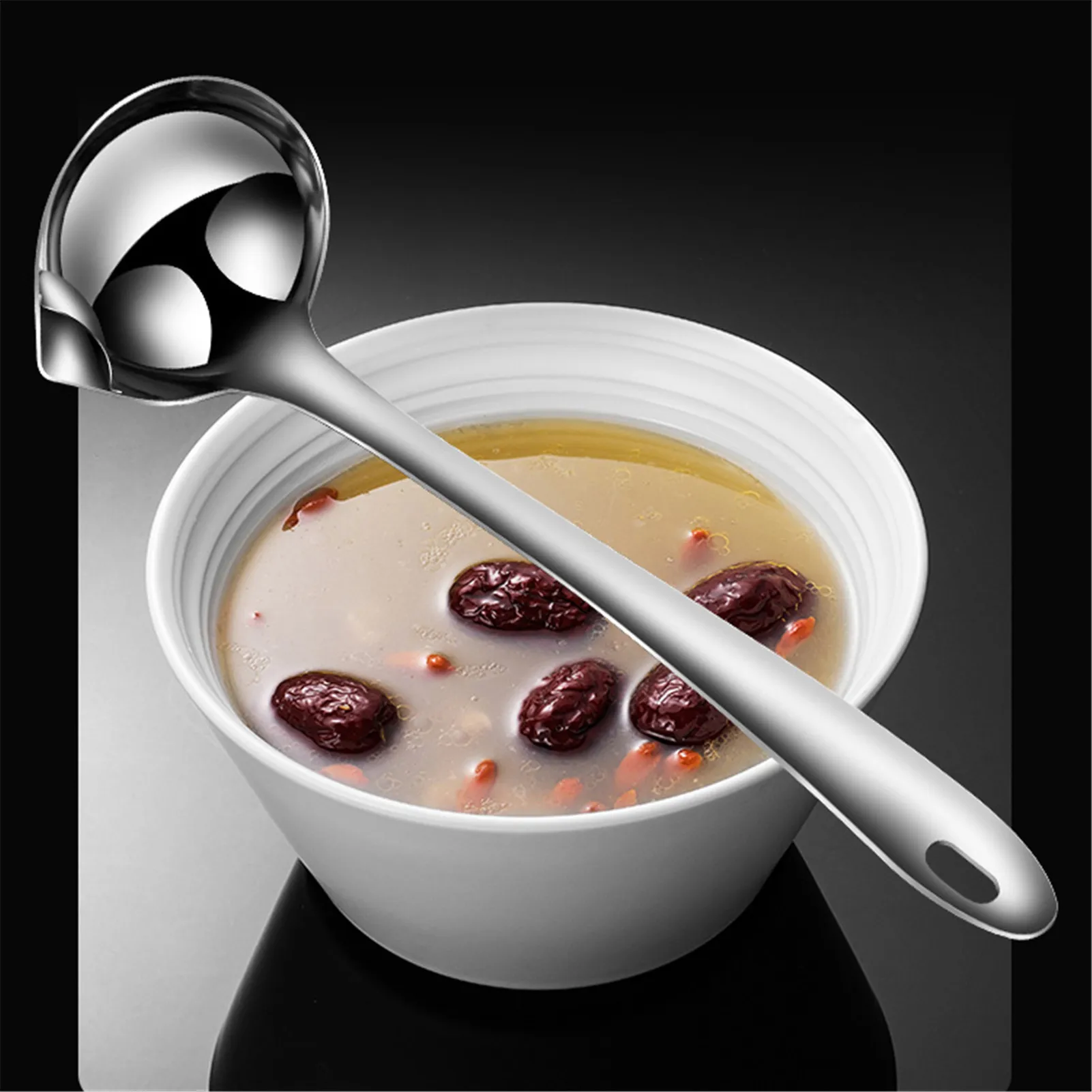 Точки пули:1. Отверстие фильтра: дизайн отверстия фильтра, эффективно фильтрует воду и масло. Удобно для вас пить суп, не употребляя слишком много жира и остатков супа. С меньшим количеством масла, вести здоровый образ жизни.