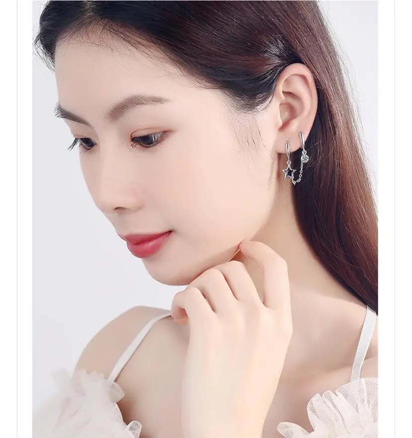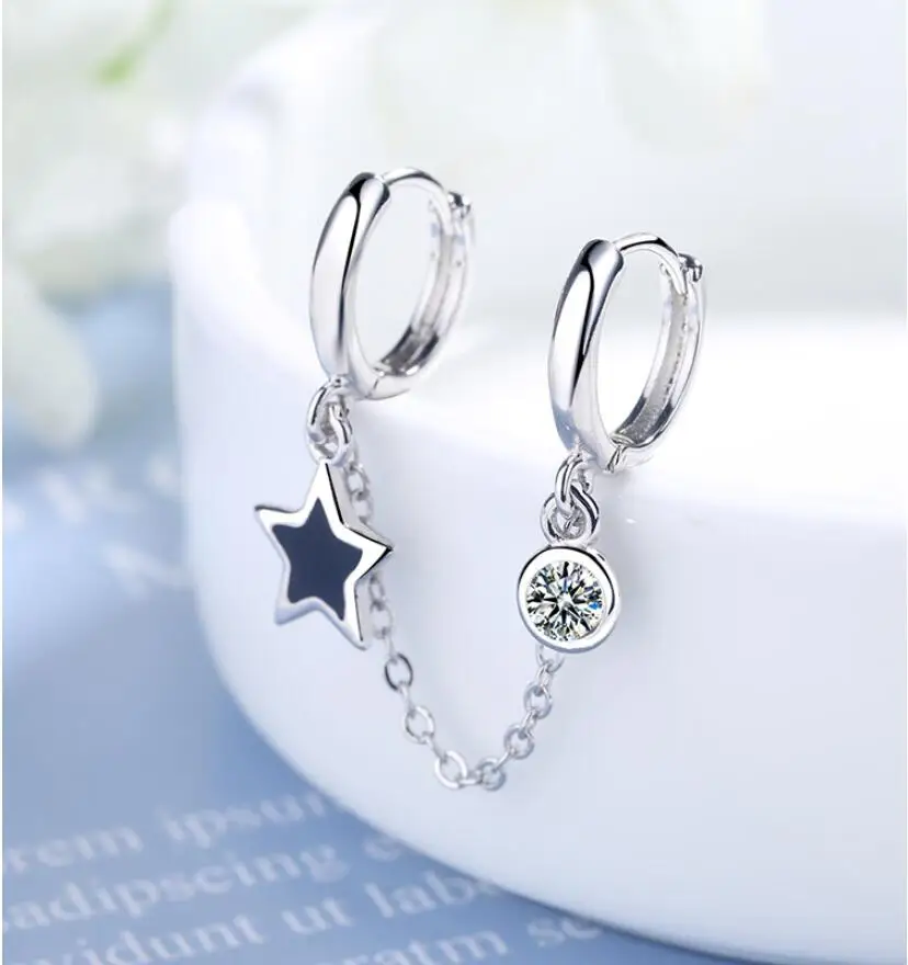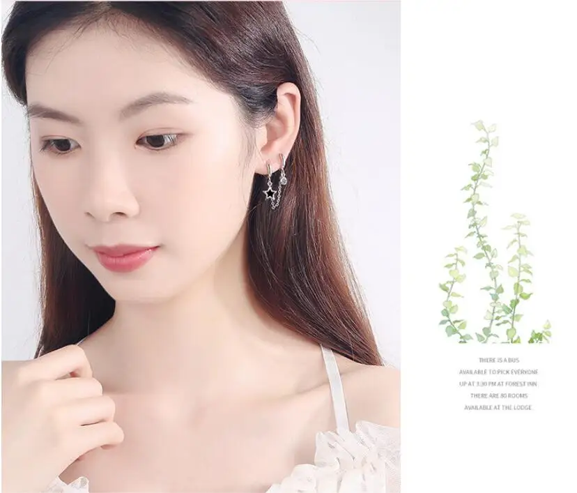 Отзывы о Мода 1 шт. Серебряный Цвет двойной проколотых ушей циркониевые серьги-кольца