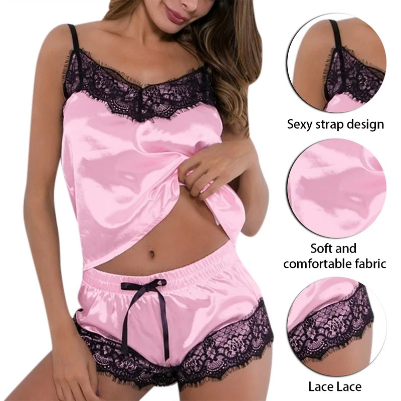 Отзывы о Пижама женская шелковая пикантная одежда для сна летний пижамный комплект Милая