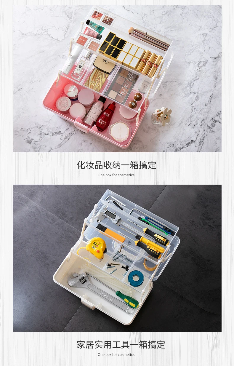 Большая емкость: трехслойная коробка для хранения достаточно для хранения большего количества предметов, что позволяет разместить различные предметы, что делает вашу жизнь более удобной. Можно сортировать и размещать разумно, легко носить с собой