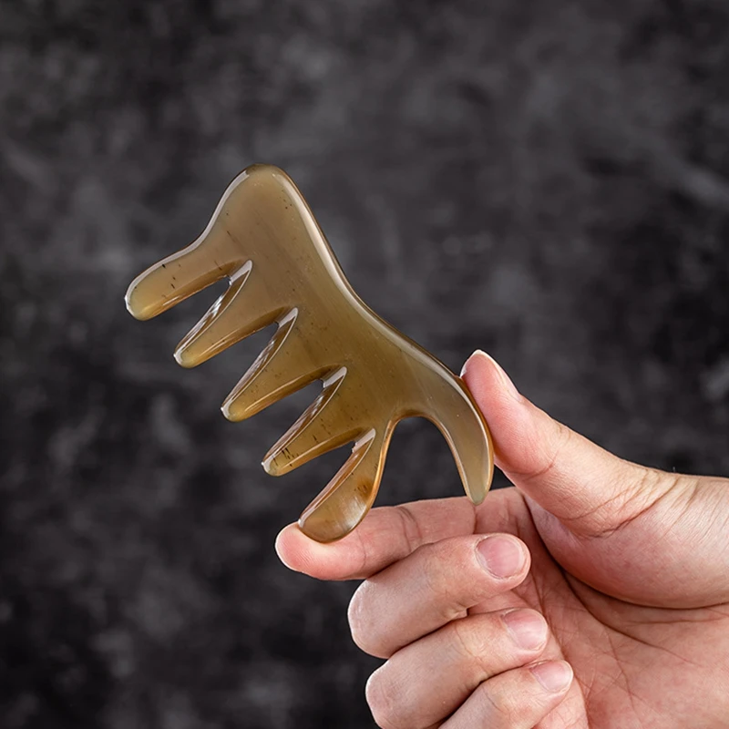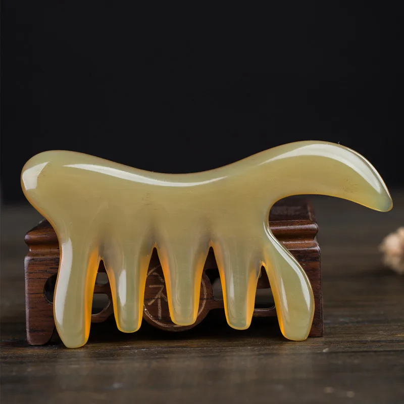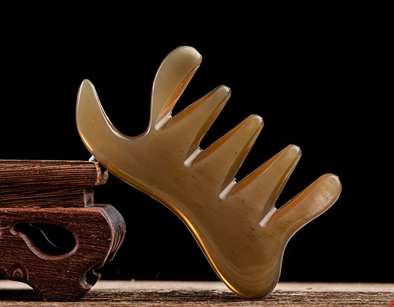 Натуральный Рог яка широкая зубная расческа голова Меридиан Массажная расческа для кожи головы Уход за кожей лица Акупунктура Gua Sha спа косметический инструмент