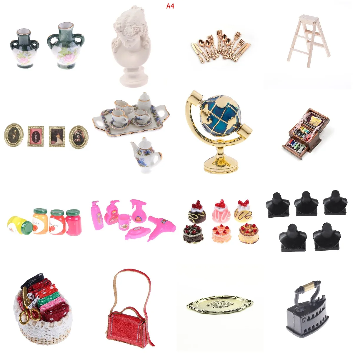 Тканевая корзина, Электрический Железный ноутбук, крем, торты, кухонные принадлежности, часы, ваза, лестница, бюст, сумочка, кошелек, ножницы, чашка для посуды, чайный набор, посуда, аксессуары для ванной, декор кукольного домика