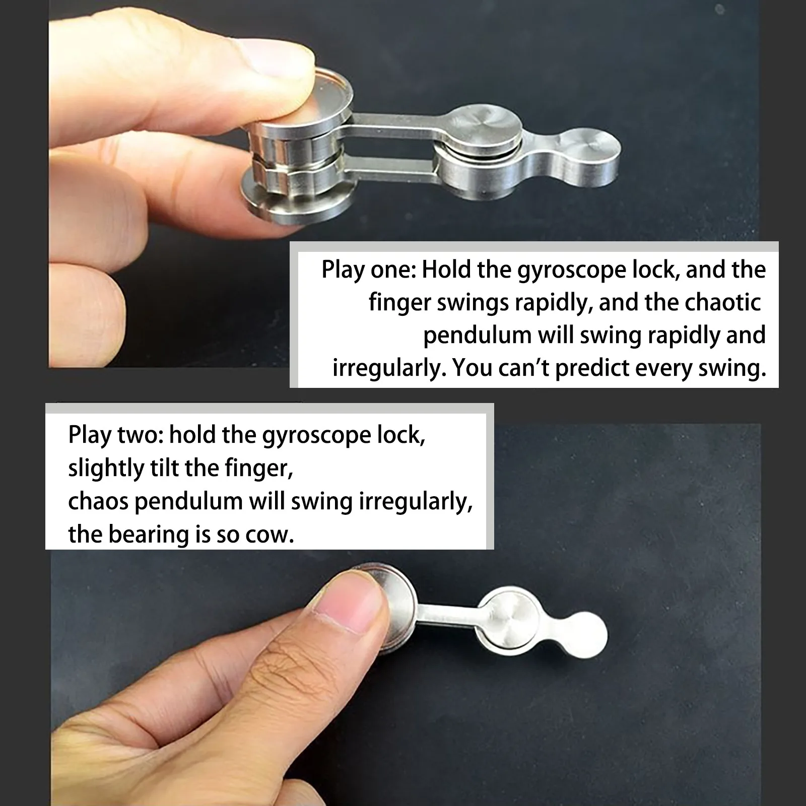 • Самый новый стиль Уникальная игрушка fidget ever, основанная наТео риДВОЙНОГО МАЯТНИКА и Случайное движение (хаосТео ри). Это означает, что движения уникальны и следуют Различные пути каждый раз, когда вы вращаетесь.