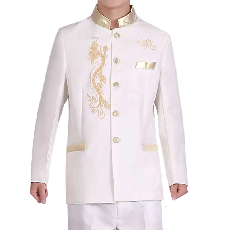 Отзывы о Мужской костюм-туника с вышивкой дракона золотистый однобортный пиджак в
