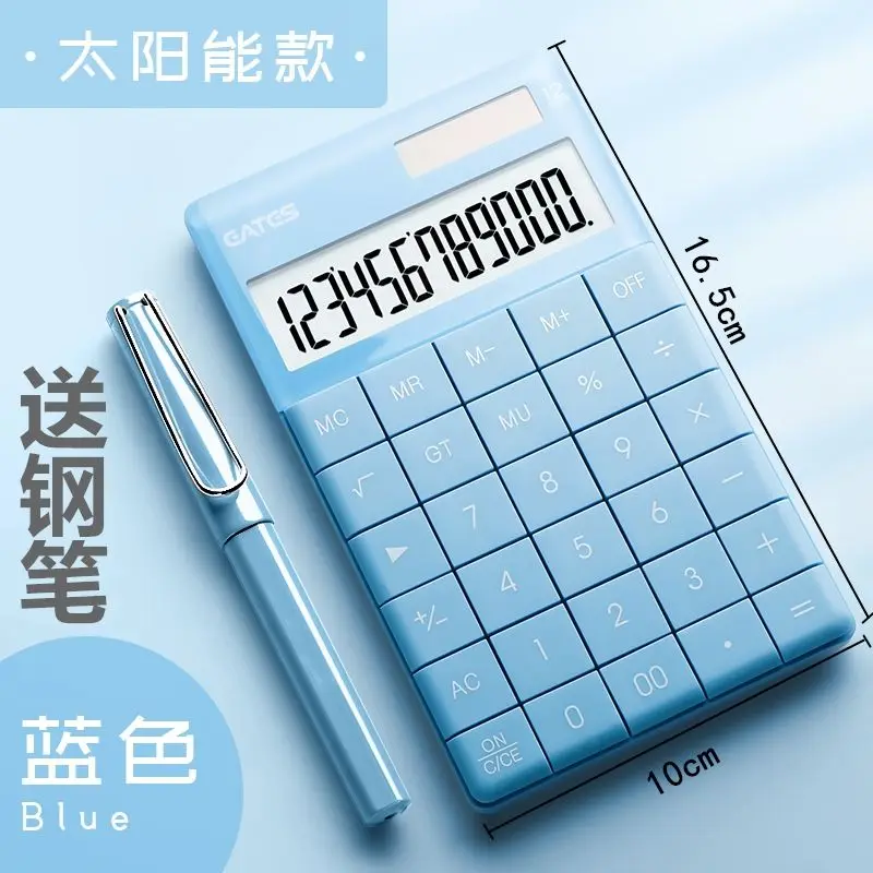 12 цифровой Настольный калькулятор, большие кнопки, инструмент для ведения бизнеса, белый, синий, оранжевый, розовый аккумулятор и солнечная энергия
