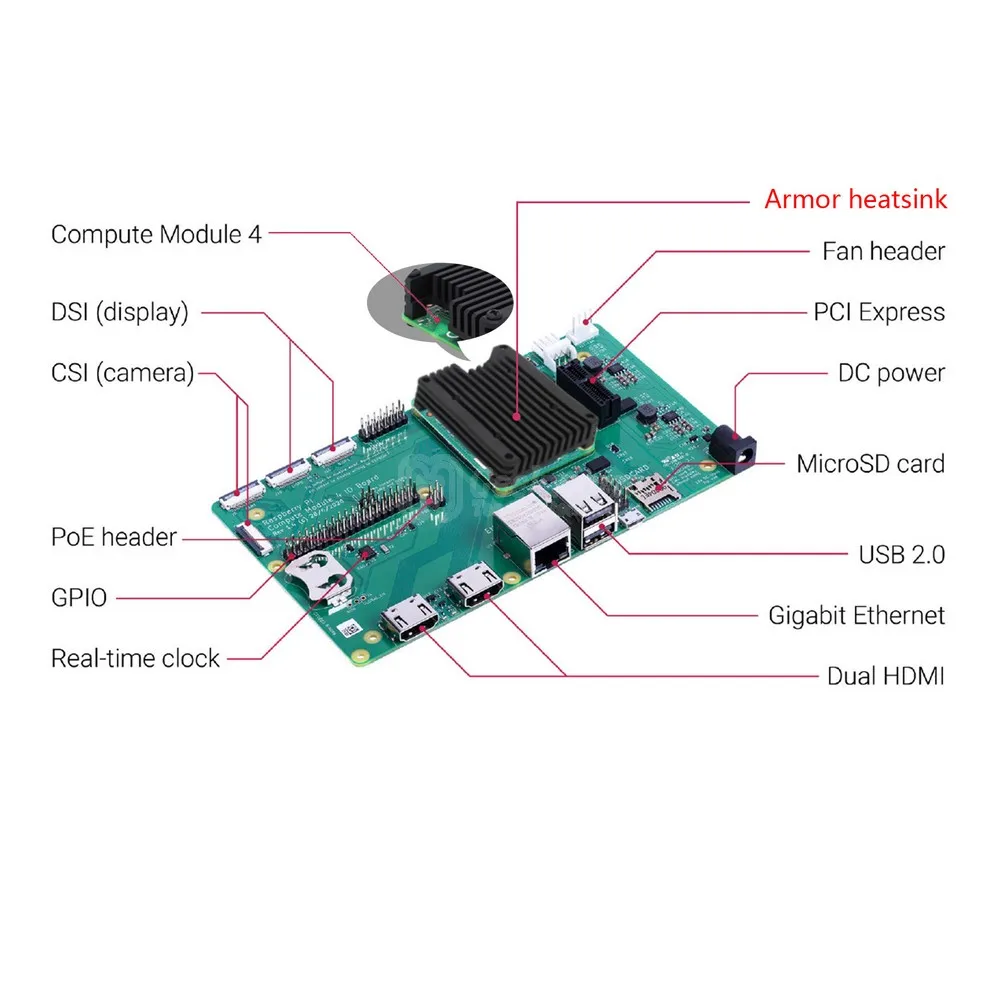 Geekworm дизайн этот CM4 встроенный бронированный радиатор из алюминиевого сплава, чтобы решить проблему производства тепла, Этот радиатор также может использоваться с охлаждающим вентилятором 30 мм выше.[Особенности]