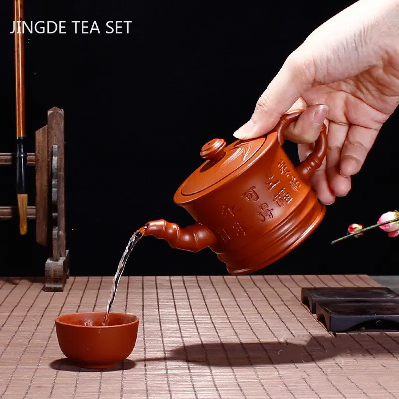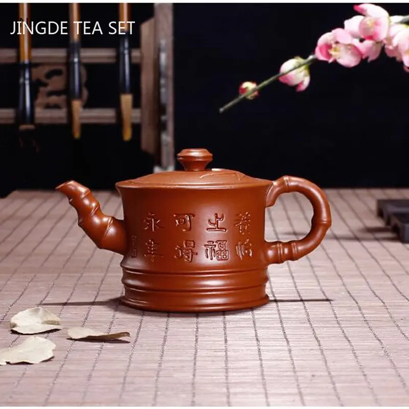 Китайский Yixing чайный горшок с бамбуковой секцией с надписью Фиолетовый Глиняный фильтр чайник для красоты сырой руды ручной набор для чая Посуда для напитков 100 мл