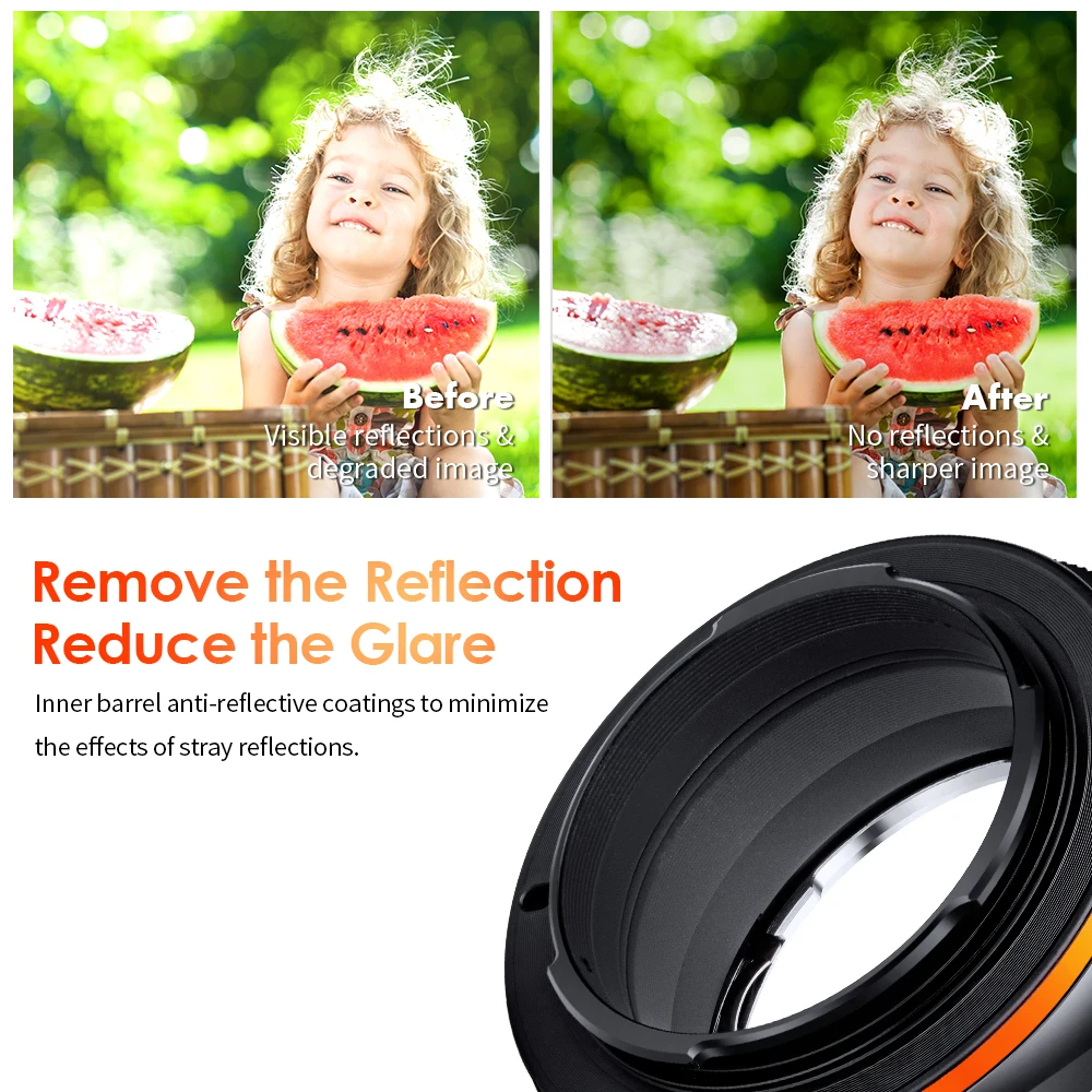 • Высокая точность идеальной передачи, корпус кольца из алюминиево-магниевого сплава, тонкий Медный байонет не будет носить объектив, мастерство очень изысканное, плотное и гладкое сочетание с байонетом, регулируется и фокусируется, воспроизводит функцию макрообъектива.