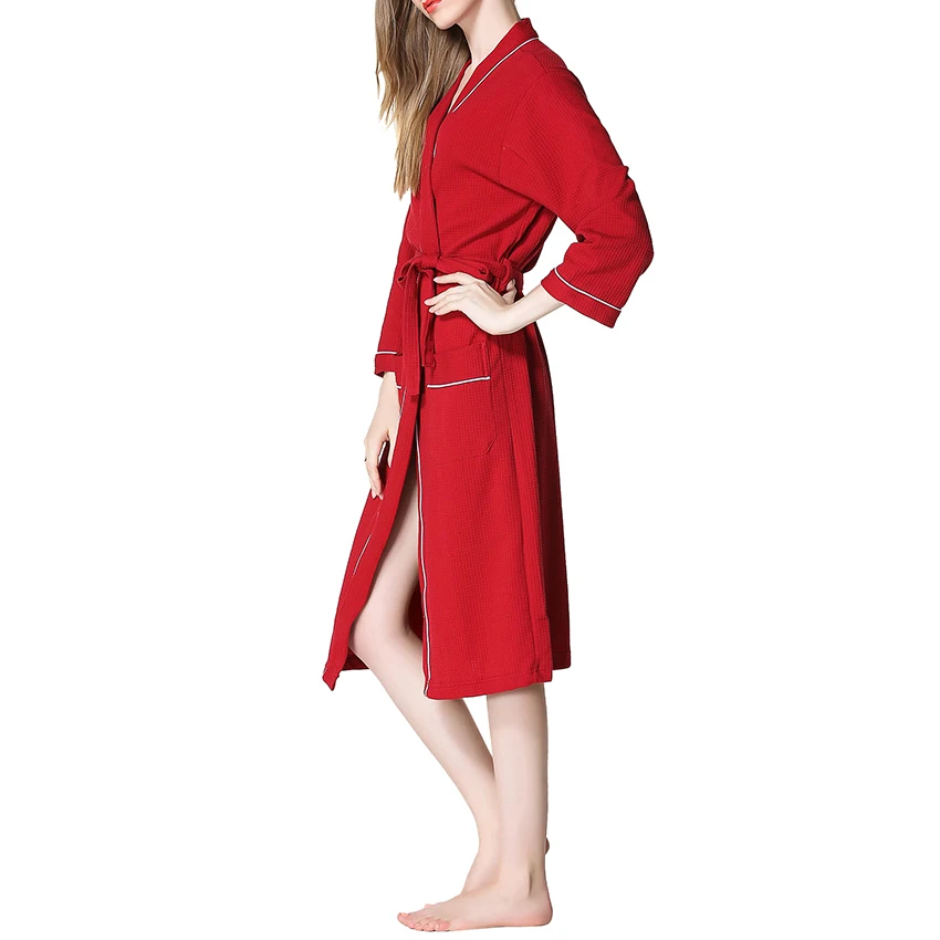 Вафельный Халат унисекс чистого цвета для женщин и мужчин, сексуальный халат, полотенце, легкое платье с карманами