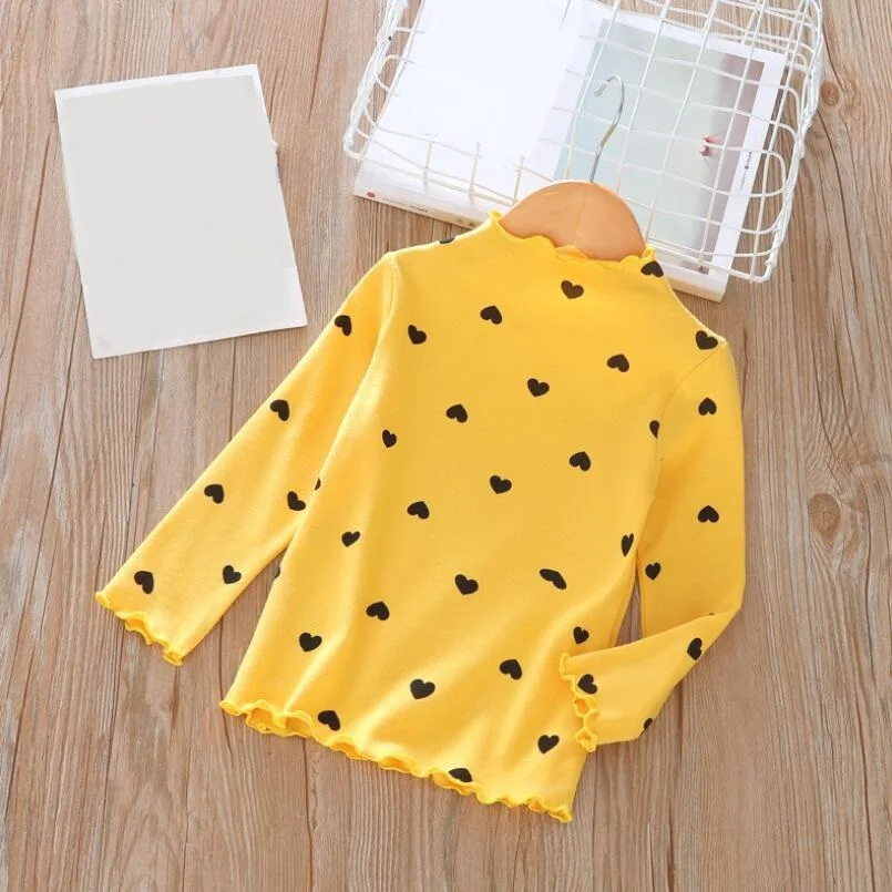 Футболки для девочек хлопковая футболка с длинными рукавами джемпер с высоким воротником для малышей блузка для девочек детские топы, футболки, детская одежда
