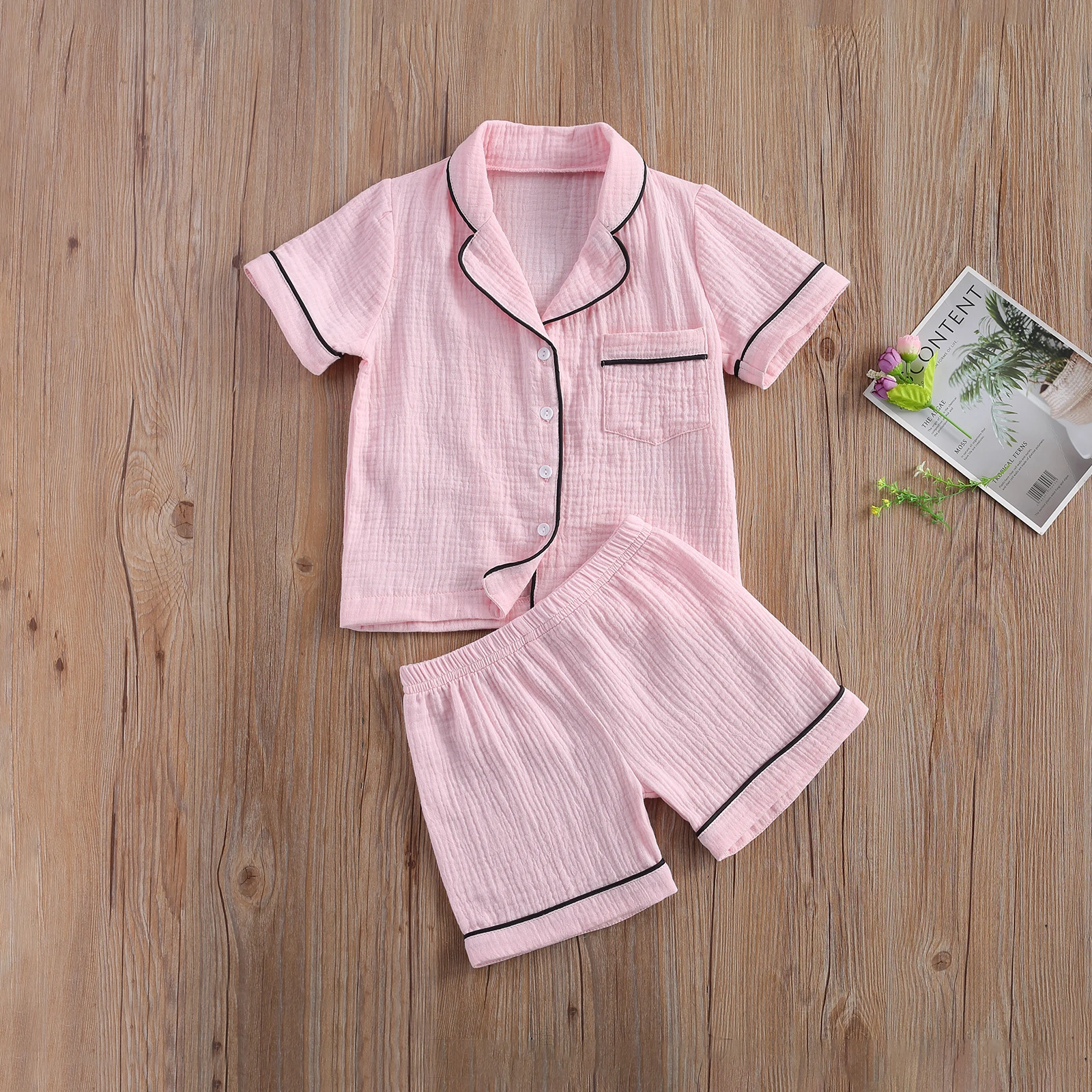 Детский костюм для сна из двух предметов однобортная рубашка с короткими рукавами Топы с передним карманом и эластичные шорты